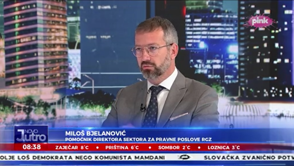 Гост јутарњих емисија на Euronews TV, ТВ Хепи и ТВ Пинк био је Милош Бјелановић, помоћник директора сектора за правне послове РГЗ који је говорио о Новом Закону о изменама и допунама закона о државном премеру и катастру који је ступио на снагу, доносећи олакшице за грађане и омогућавајући лакши упис права својине по старим исправама. Најважнија новина је поступак који признаје правну важност старих исправа са формалним недостацима, али које јасно доказују власништво. Опширније погледајте у наставку.